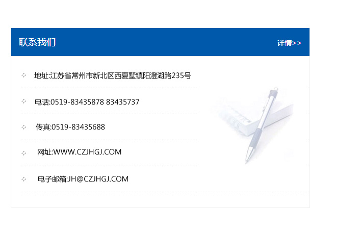 傳真:0519-83435688    郵編:213135    網址:WWW.czjhgj_com.jhgjd.com    電子郵箱:JH@czjhgj_com.jhgjd.com